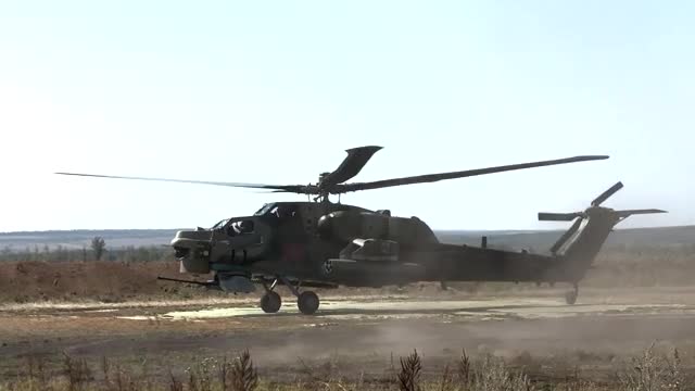 Russia reported that a Mi-28NM helicopter carried out an airstrike on Ukrainian forces' personnel and armoured vehicles near the border area of the Kursk region. 2024-09-05 21:09:04
