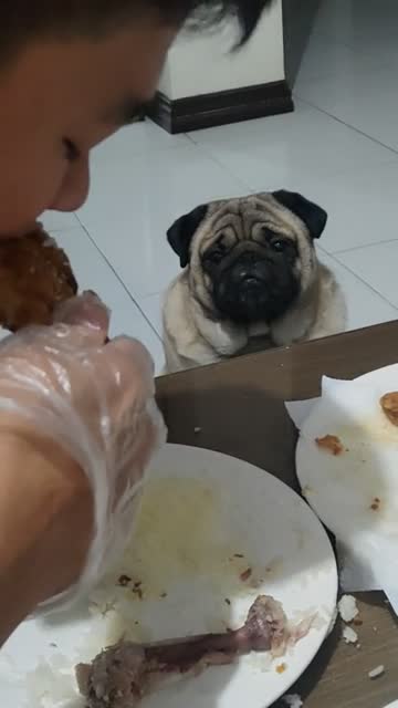 Footage shows the four-year-old pooch named Bruno with a wrinkly forehead looking at his owner, who was having dinner in Calabarzon, the Philippines, on September 1.