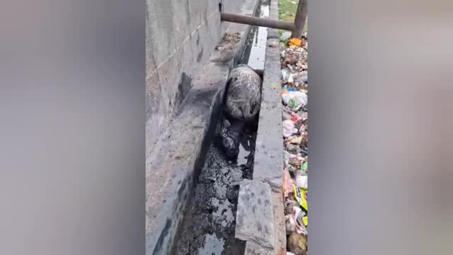 Footage shows the rescue operation, where a JCB excavator was used to pull the animal to safety in Sector 120, Noida, Uttar Pradesh, on September 4.