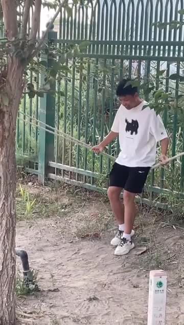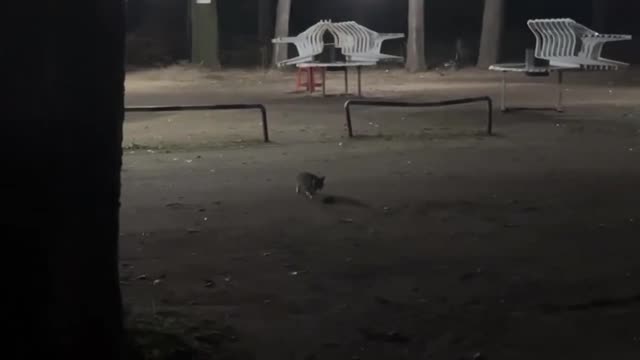 A passerby spotted the tabby kitten playing with the amphibian in a park late in the evening in Jixi, Heilongjiang, on August 17.