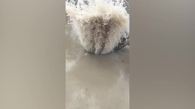 The bi-coloured feline was about to walk outside an underpass when it was nearly blown away in Chongqing, China, on September 2.