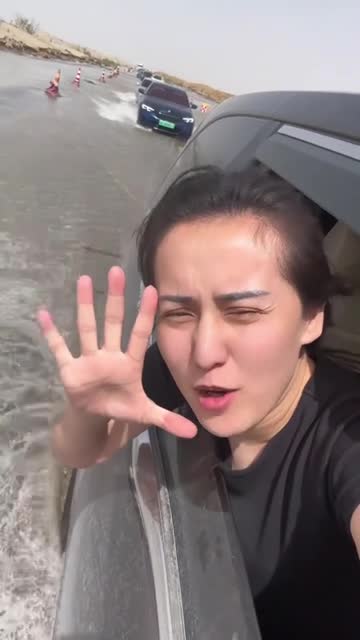 Footage shows a woman on an off-road trip discovering significant flooding, with water levels reaching up to one metre in certain areas, resulting in vehicles that struggled to drive or even stalled in Aksu, Xinjiang, on August 24.
