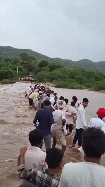 Footage shows the Devasi community in a long line working together to rescue the farm animals swept away by the strong currents of the Mirpur River in Sirohi district, Rajasthan, on August 30.