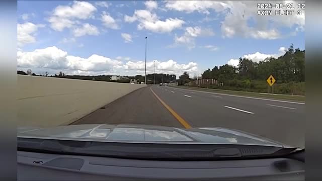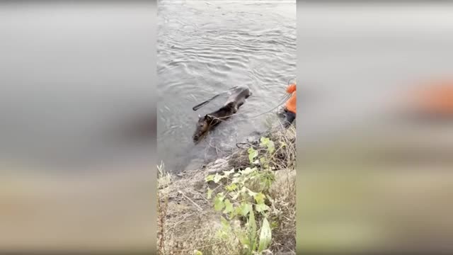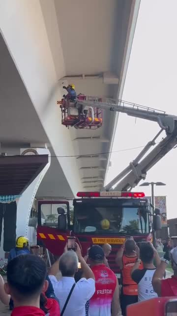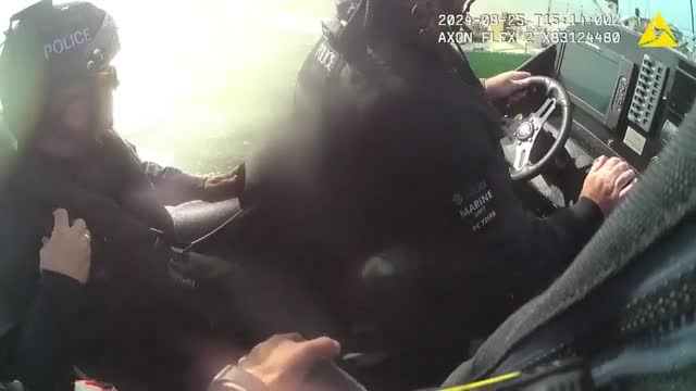 Footage shows Police Constable Danny Nelson throwing a life ring to the woman and pulling her to safety amid the rapidly rising tide during Blackpool's annual 'Ride the Lights' event on August 27.