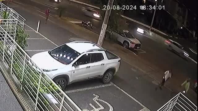 Footage shows a cyclist on Avenida Rondon Pacheco Street, Uberlandia, Minas Gerais, struggling with a thief who attempted to steal his bicycle on August 20. 2024-08-29 18:34:23