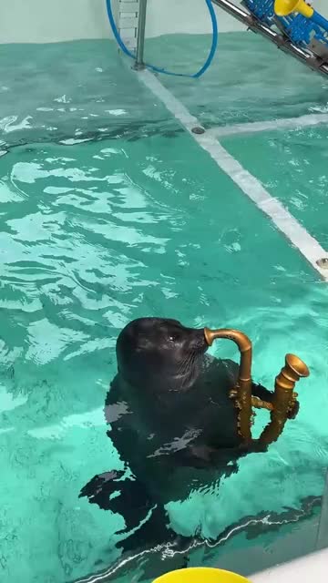 Footage shows the rotating in the water while holding the wind instrument and seemingly blowing on its mouthpiece at the Baikal Seal Aquarium in Irkutsk on August 5. 2024-08-23 10:54:18