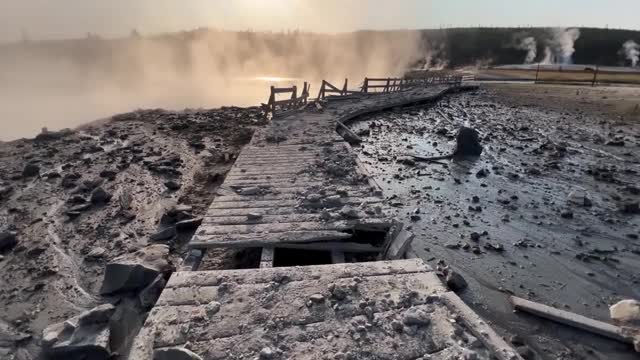 The U.S. Geological Survey's Yellowstone Volcano Observatory reported that the incident damaged the boardwalk in the Biscuit Basin area, northwest of Old Faithful, on July 23. 2024-08-23 12:41:17