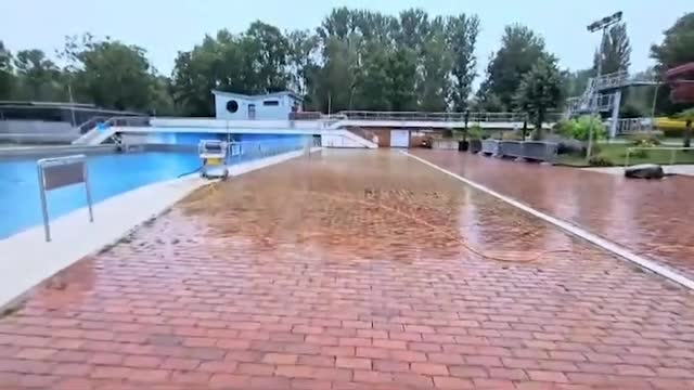 The unexpected 'guests' were seen by a lifeguard who came to the outdoor pool in Karlsruher Baeder, Baden-Wuerttemberg State, Germany, to start his morning shift on August 20. 2024-08-23 15:19:56