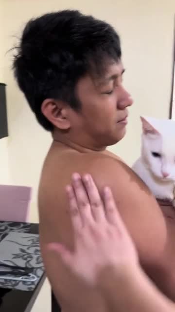 Stacey Mark Hernandez was carrying Snow, his two-year-old puspin, when his wife playfully hit his shoulder, causing the feline to paw at her in Manila, the Philippines, on June 22.