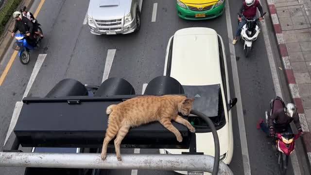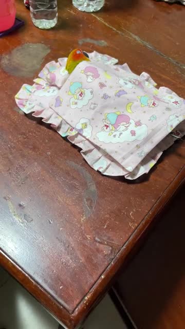 Footage shows the sun conure lying on his back on a comfortable bed with cute characters in Samut Prakan province, Thailand on July 20.