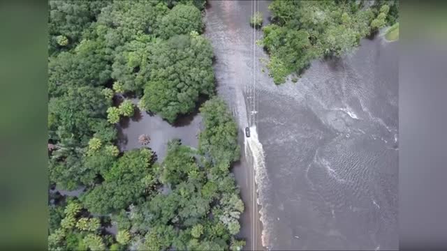 College students Pinky, Mind, Ploy, and Nok, juniors at the Faculty of Education in Valaya Alongkorn Rajabhat University, saved the distressed brown pooch floating in the water in Pathum Thani, Thailand, on August 11.