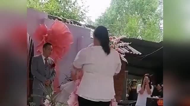 A young newlywed couple was literally covered in money after the groom's eightsisters and eight brothers-in-law each gifted them a necklace made of banknotes as awedding gift. 2024-08-10 08:59:12