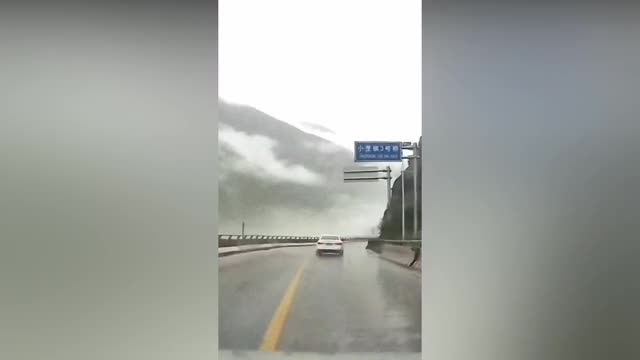The vehicled was travelling along the route shortly before the massive rockfall occurred in Ganzi Road, Sichuan Province on July 29. 2024-08-09 13:36:20