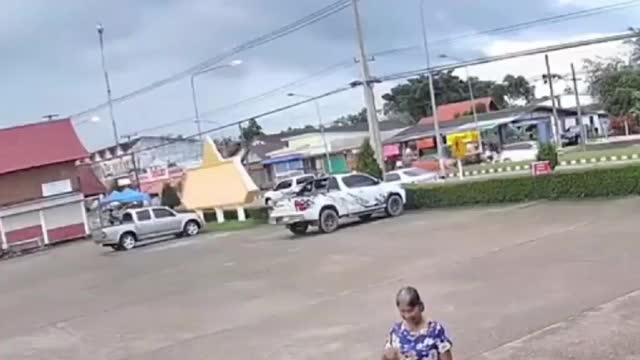 CCTV footage shows the black truck trying to avoid a sedan, veering to the right, and ramming into the shop on the side of the road in Sakon Nakhon, Thailand, on August 5. 2024-08-09 17:38:51