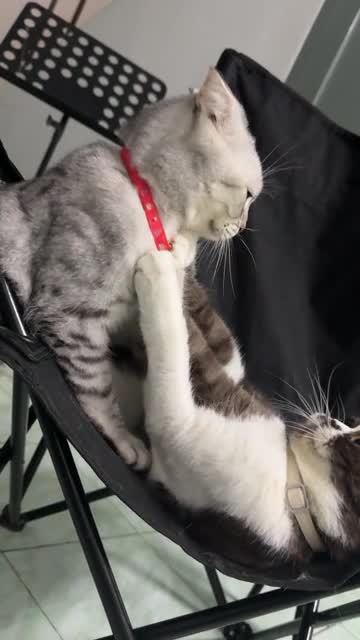 Footage shows the felines lightly punching each other on the faces with their paws in Ratchaburi province, Thailand on August 5.