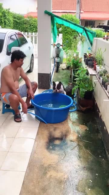 Kati, the one-year-old black and white pooch, and its six-month-old sibling, Kapraw, enjoyed a bath during the hot weather in Phitsanulok, Thailand, on July 29. 2024-07-31 21:28:37