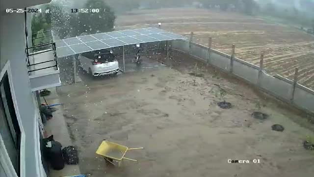 Footage shows the passenger acting as the vehicle's manual wiper when the accessory failed during a storm in Pathum Thani, Thailand, on July 29. 2024-07-31 21:22:16