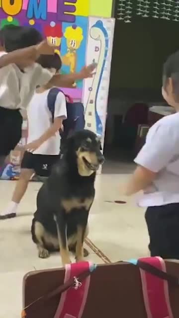 Nong Noi, the six-year-old pooch, was surrounded by kindergarteners and being petted in the classroom in Chanthaburi, Thailand, on June 22. 2024-08-01 11:11:32
