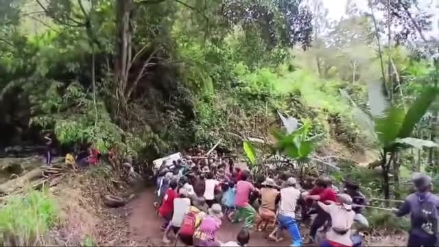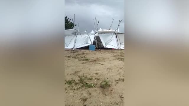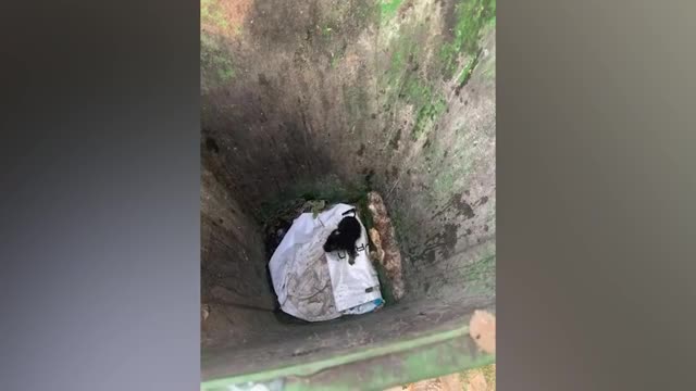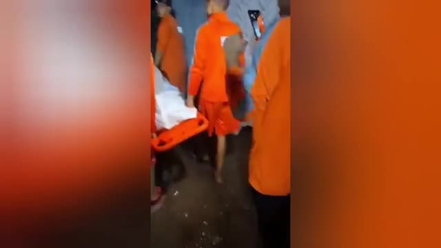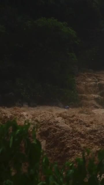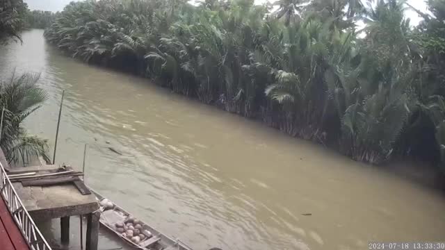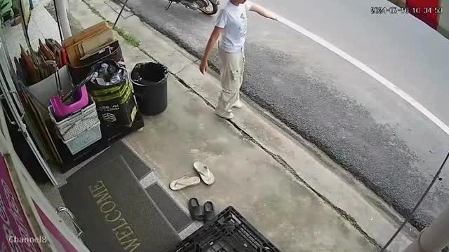 CCTV footage shows the resident stepping on the wooden structure when it crumbled and threw him into the water in Surat Thani province, Thailand on July 18.