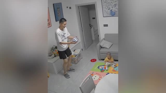 While the child, a five-month-old boy named Xiao Mai Dou sweetly playing on the floor by himself, the father, bored, swatted a ball at the floor and unintentionally increased the force. With a crunch of breaking glass and a flash of light, the ball bounced up accurately hitting the roof light and shattering it.